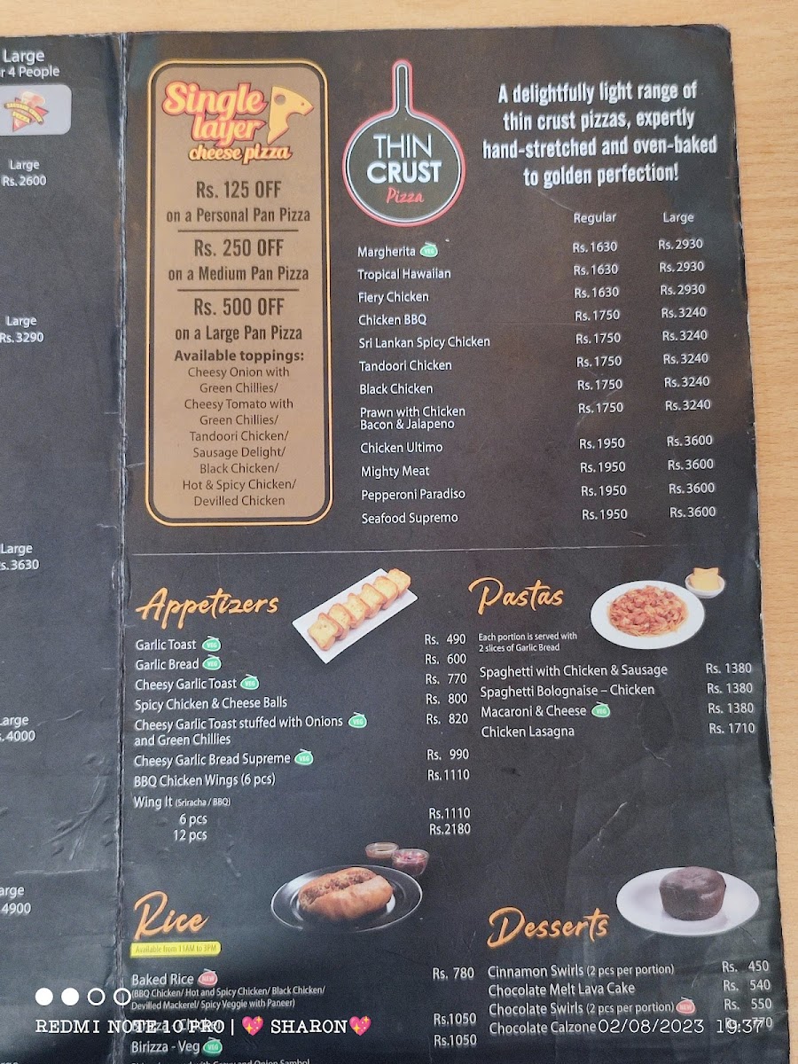 The menu at PizzaHut Marawila offers a straightforward selection of classic and contemporary pizza choices, alongside comforting sides and casual drinks. Designed for quick bites or relaxed meals, it suits those looking to enjoy familiar flavors in a friendly, no-fuss setting.